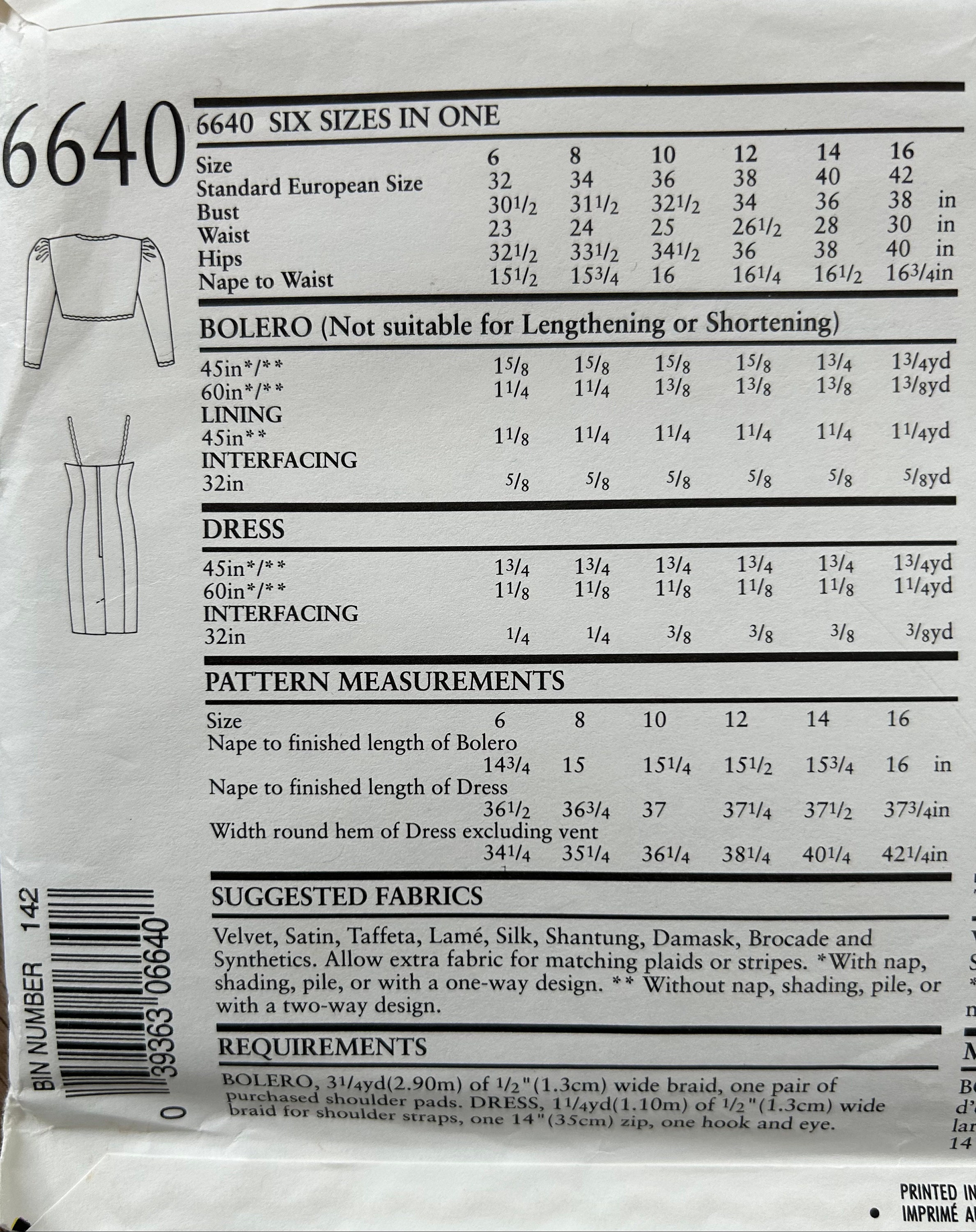 Ladies Bolero Dress Sewing Pattern New Look 6640 Size 6 Etsy